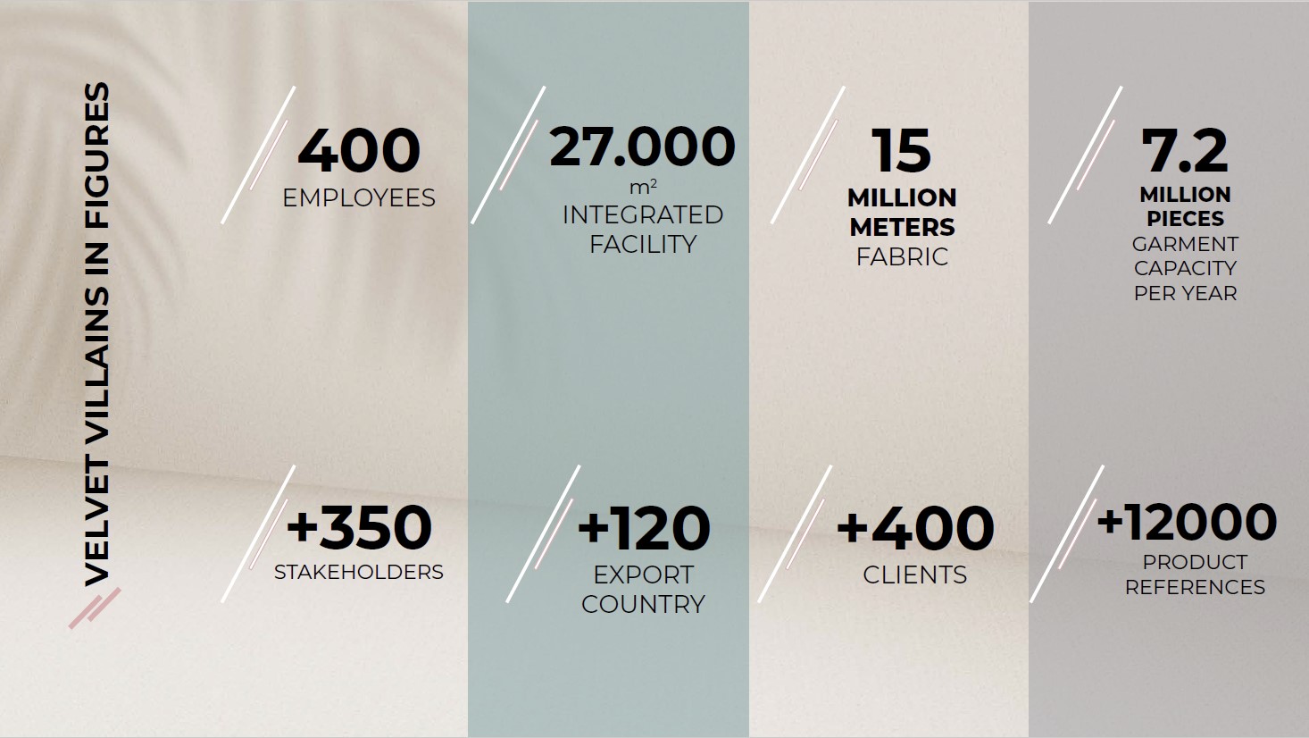 Founded in 1987, as a dream made of knowledge and tradition. Velvet Villains is fabrica nd garment manufacturer, based on 27.000 square meters, as a fully integrated facility , raw meterial to garment , in Bursa / Turkey